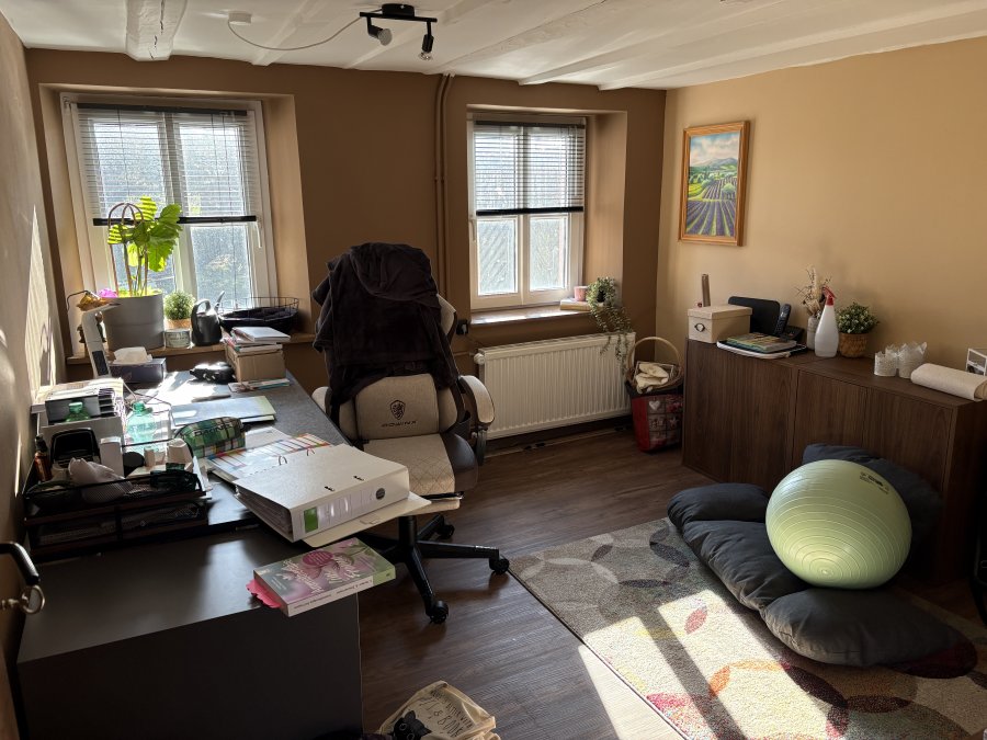 Fenster wurden erneuert, teilweise mit 3-fach Verglasung, die Elektrik wurde ersetzt, das Bad wurde komplett erneuert ? Raum für Raum wurde renoviert und neu gestaltet, das Dach über dem Wohnzimmer wurde neu eingedeckt, die Küche wurde erneuert, eine neue Haustür wurde eingebaut, die Holztreppe zum Obergeschoss wurde abgeschliffen und neu gestrichen, Bodenbeläge wurden erneuert ? dies alles sind Beispiele dafür, wieviel Arbeit und Geld in den vergangenen Jahren in das Haus investiert wurde, um die Bausubstanz des ehemaligen Bauernhauses in ein wohnlich attraktives Refugium umzugestalten. Und dies ist gelungen.