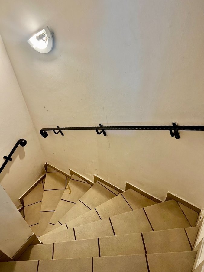 Wendeltreppe zur unteren Gartenterrasse mit direktem Zugang zum Partyraum